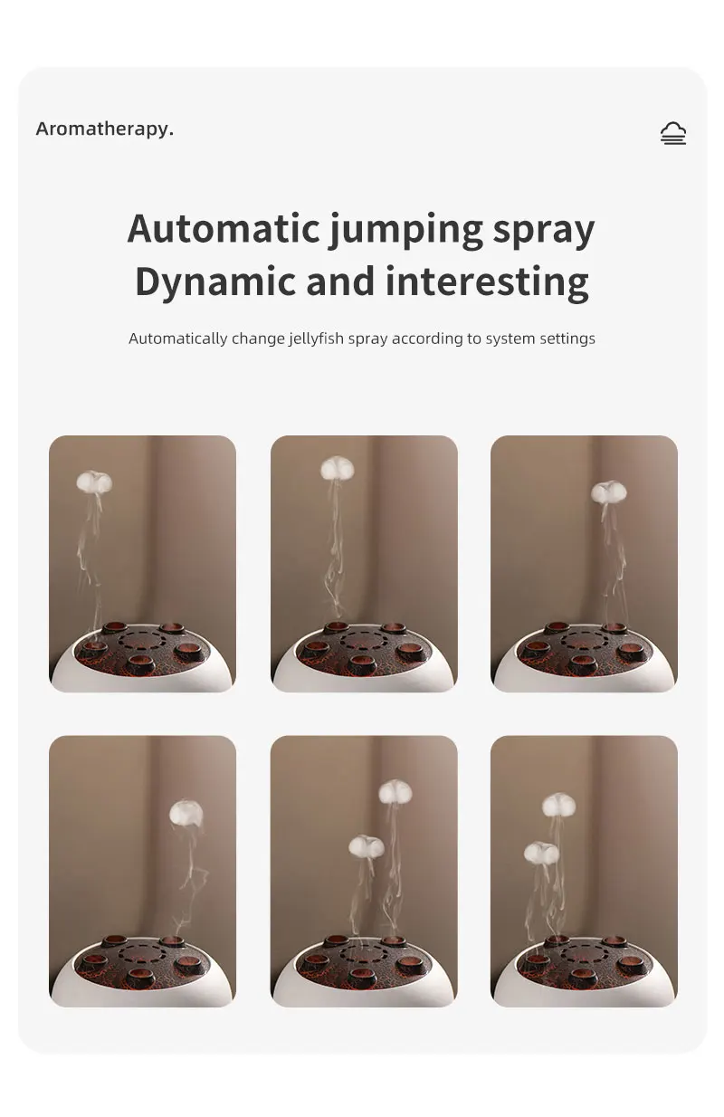 1.【Unique Dancing Jellyfish Air Diffuser 】Exquisite crater crack design with Dancing Jellyfish cool mist, it’s not only an humidifier aromatherapy diffuser, but also a aesthetic home decoration artwork to release your stress.